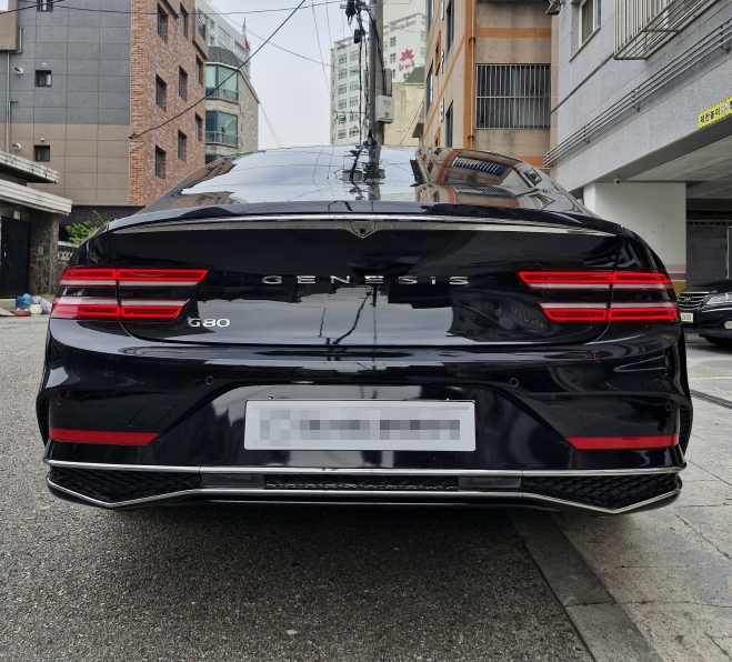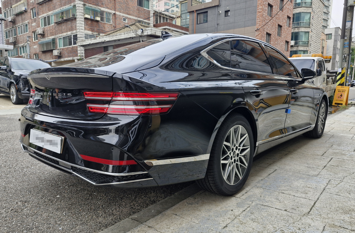 ✅ 비크 블랙 컬러의 중후함: 비크 블랙 외관은 G80의 크레스트 그릴과 쿼드 램프 디자인을 가장 극적으로 부각하며, 5,005mm의 전장과 결합되어 도로 위에서 강력하고 중후한 존재감을 발산합니다. 50대 법인 대표님의 흔들림 없는 신뢰와 품격을 완벽하게 상징합니다.