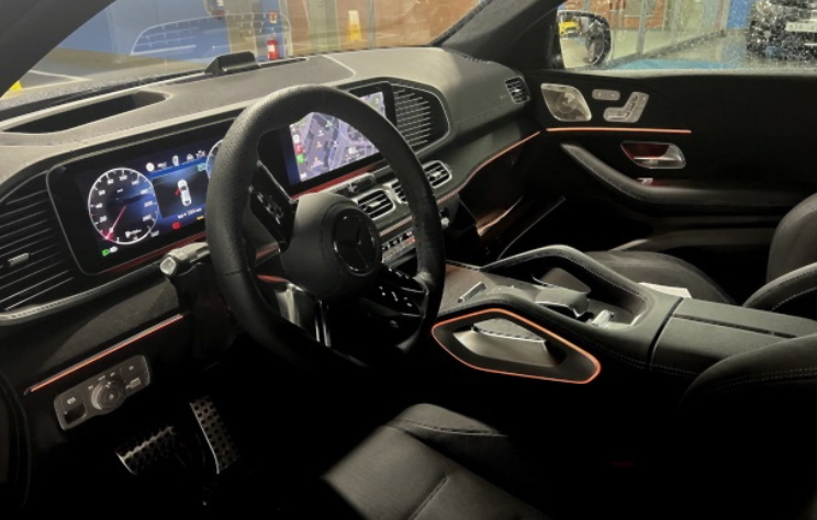 2026 벤츠 GLE 450d 쿠페의 실내에 들어서면 겉모습 못지않은 엄청난 공간감에 놀라게 됩니다. 마감재 하나하나 가죽이 적절히 섞여 있어 플래그십 차량처럼 럭셔리한 분위기를 연출합니다. 특히, 64가지 컬러 조합이 가능한 앰비언트 라이트는 지나치게 화려하지 않으면서도 은은한 빛으로 매일 다른 분위기를 선사하며, 메르세데스의 실내 인테리어 디자인 철학을 엿볼 수 있습니다.